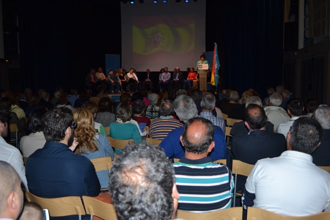 Empezando por los reservas, fueron saliendo al escenario cada una de las personas que componen la lista electoral, entre aplausos del público asistente. Además de la candidata a renovar la alcaldía, Mª Ángeles Herrera, intervinieron Carlos Izquierdo, consejero de Asuntos Sociales y Familia y nº 5 en la lista del PP a las elecciones regionales, y Ángeles Pedraza, presidenta de la Asociación de Víctimas del Terrorismo.