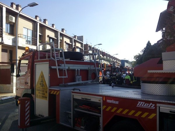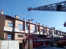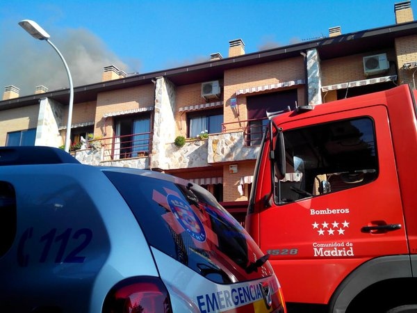 [Img #12847]A las 13.45 horas el Summa-11 ha recibido un aviso de incendio en la calle Alhambra de Pinto donde se han desplazado, además del equipo de emergencias, diez dotaciones de Bomberos, la Policía Local y PIMER-Protección Civil de Pinto. Las llamas comenzaron en la buhardilla del nº 28 desde donde se extendieron a través del aislante del frío al nº 26 y levemente al nº 24, por lo que se decidió atacar el fuego con escalas desde arriba.