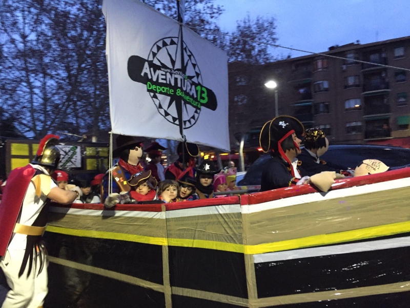 El tradicional desfile de Carnaval celebrado en Pinto el pasado sábado 6 de febrero terminó en el polideportivo Alberto Contador con el concurso de disfraces, donde el jurado concedió el primer premio a la carroza del equipo de Aventura13, la joven empresa pinteña dedicada al deporte, la aventura, el ocio y la formación.