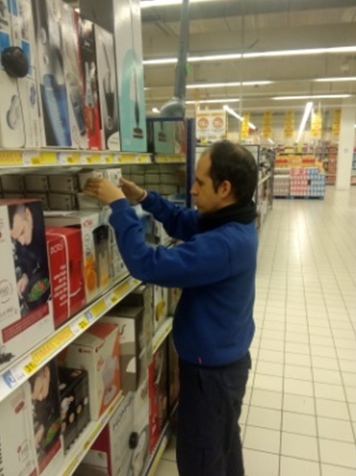 Gonzalo realiza prácticas formativas en la sección de bazar del hipermercado E.leclerc de Pinto. El objetivo es desarrollar las habilidades relacionadas con la reposición, la atención al cliente y las habilidades necesarias para desarrollar una actividad laboral.