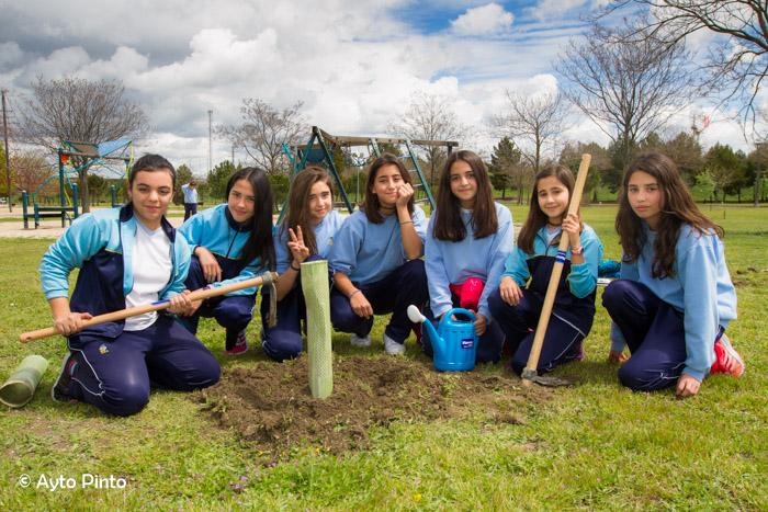 Los alumnos de 5º y 6º de primaria del colegio Santo Domingo de Silos, por la mañana, y numerosas familias pinteñas, por la tarde, han plantado 300 ejemplares autóctonos en una de las zonas verdes más emblemáticas de Pinto: el parque Juan Carlos I.