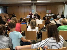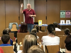 “Hace 16 años estaba con mi mujer y mis dos hijos de vacaciones en un restaurante de Huelva y como tardaban mucho en servirnos jugamos a inventar historias y contar cuentos. Fue ahí donde nació esta historia de Ruscu-Ruscu, acertado nombre que le dio mi hija, que entonces tenía ocho años, a la mofeta, pues no sabemos, ni falta que hace, si es macho o [Img #20431]hembra”. Así explicaba el autor el origen de la obra durante su presentación (9 octubre) en la Biblioteca Municipal Gloria Fuertes, de Parla.