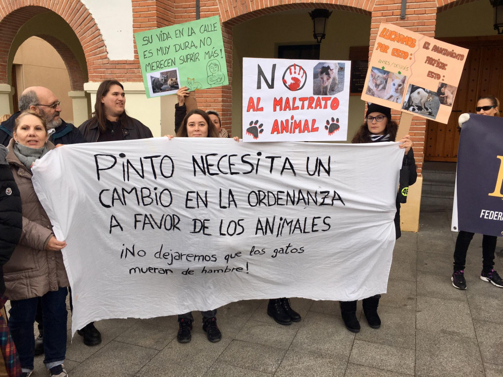 A pesar del frío y de la lluvia, cerca de un centenar de personas participaron en la concentración convocada por las entidades FADAN y ABAP en defensa de los derechos de los gatos callejeros de Pinto y en rechazo a las multas de 750 euros impuestas a dos alimentadoras locales. La protesta contó con asociaciones procedentes de distintos puntos como Toledo o Alcalá de Henares, así como con representantes de las agrupaciones pinteñas de Unidas Pinto, Ciudadanos y Podemos.