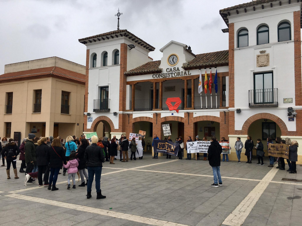 Familias y personas de todas las edades, acompañadas en algunos casos de sus mascotas, protestaron en la mañana de ayer frente las puertas del Ayuntamiento de Pinto con cánticos como ‘Alcalde tú comes, los gatos también’ y pancartas en las que se podía leer ‘Su vida en la calle es muy dura, no merecen sufrir más’. Durante las dos horas de concentración las asociaciones convocantes recabaron un centenar de firmas que se unirán a las que consigan durante la campaña que llevarán a cabo en las próximas semanas.
