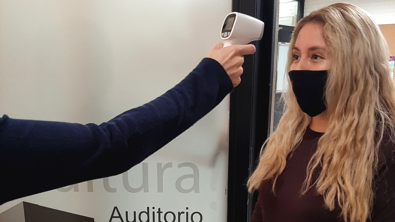 En la entrada se toma la temperatura a todos los asistentes, hay dispensadores de gel hidroalcohólico tanto en el acceso como en el patio de butacas, donde se ha bloqueado buena parte de las mismas para garantizar la distancia de seguridad entre los espectadores.
