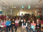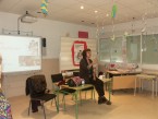 Al terminar la charla alumnos y profesores le obsequiaron con varios regalos, entre ellos, un simpático pareado: “Esta Rosa como mola, se merece una ola”.
