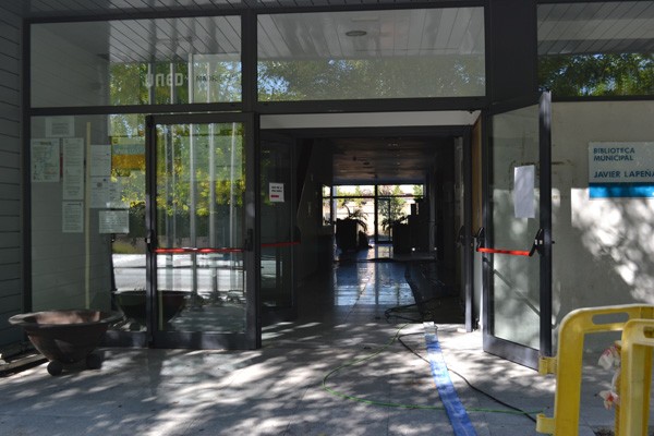 biblioteca, que permanece cerrada al público, porque, según un operario de Aserpinto, el gobierno ha dado orden de que “ningún