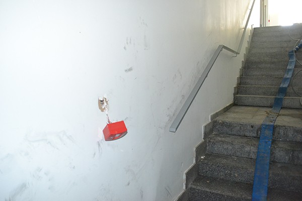 Actualización | Finalmente el alcalde en funciones, Julio López Madera, ha visitado junto a un redactor de Zigzag el interior del edificio a las 17.30 horas. El olor a humedad, el suelo mojado y las marcas de agua de casi un metro de altura dejan cuenta de la importancia de la inundación.