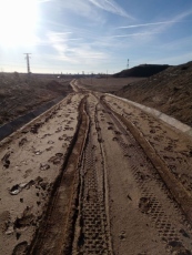 Este es el estado del camino que se supone que han arreglado hace unos días. Es el camino que va de Pinto a Valdemoro en paralelo a las vías, cruzando el puente de la carretera de los bidones. El camino antes se podía andar perfectamente aunque lloviera pero ahora este es el resultado después de un día de lluvia, "intransitable". La gente nos damos la vuelta porque esta todo embarrado y te pones de barro hasta los ojos, ayer se metió mi perro y lo tuve que lavar al llegar a casa.