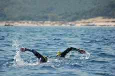 Pablo Carlos Infante y Rafael Megías cruzaron junto a dos compañeros los 15,1 km que separan la Isla de Tarifa de la Punta Cires.
