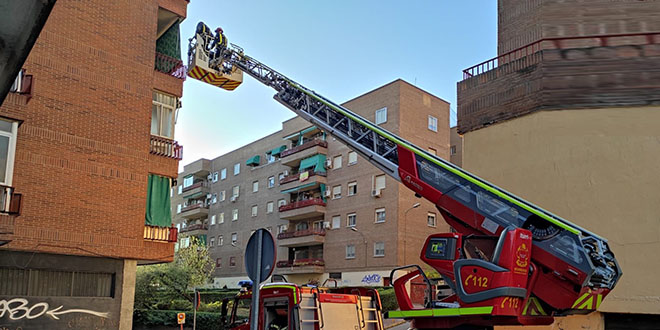 Un camión de Bomberos se desplazó hasta el lugar para desplegar una escala y poder acceder a la vivienda por la terraza. También estuvieron presentes la Policía Local de Valdemoro y el SIEPC, que trasladó al hombre al Hospital Infanta Elena con un golpe en la cabeza.