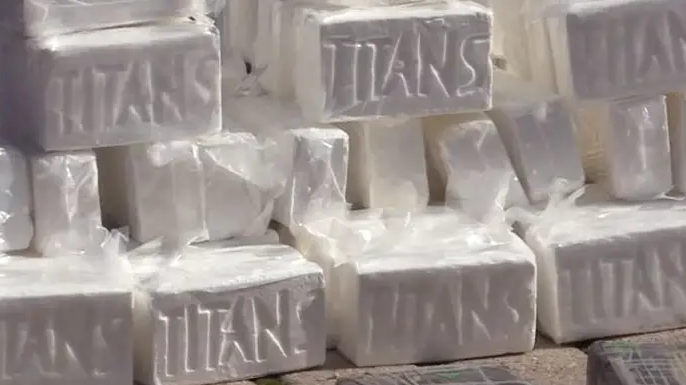 Solo en el contenedor había 200 kilos de cocaína. La Brigada Central de Estupefacientes de la Policía Nacional encontró más de 100 kilos en un piso de la Avenida Manoteras, seis bolsas de marihuana en un garaje y 57 "ladrillos" de 300 gramos de coca con la marca TITANS como sello.