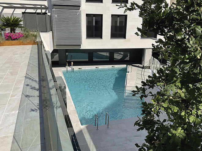 Además de piscina y solárium, el edificio de Belvedere cuenta con plazas de garaje y trasteros para todas las viviendas y oficinas, gimnasio y una sala polivalente para utilizarse como gastroteca o local de celebraciones completamente equipada.