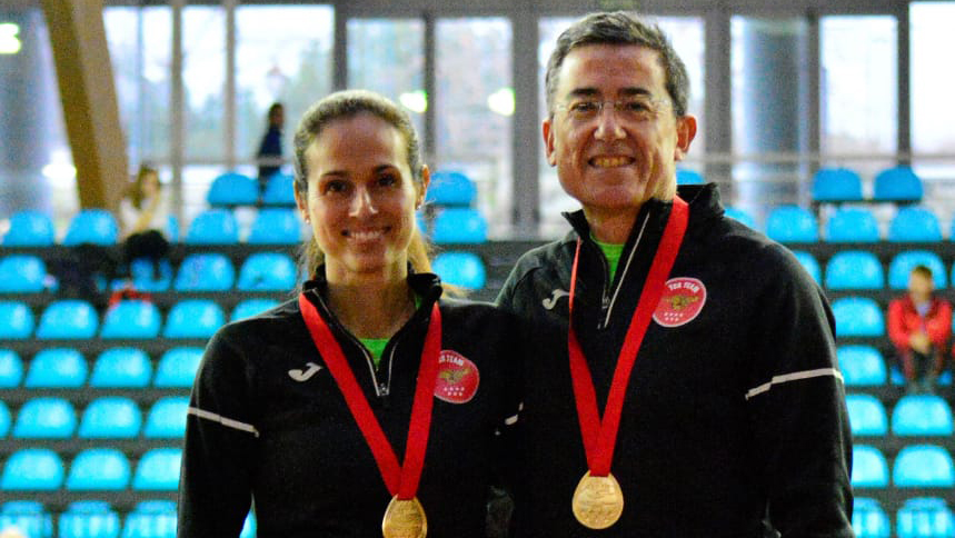 Carlos Aragón y Nieves Rubio, profesores de Educación física del instituto Villa de Valdemoro y del colegio de Nuestra Señora de Valdemoro, han vuelto a colgarse la medalla de campeones autonómicos en sus categorías de salto con pértiga.