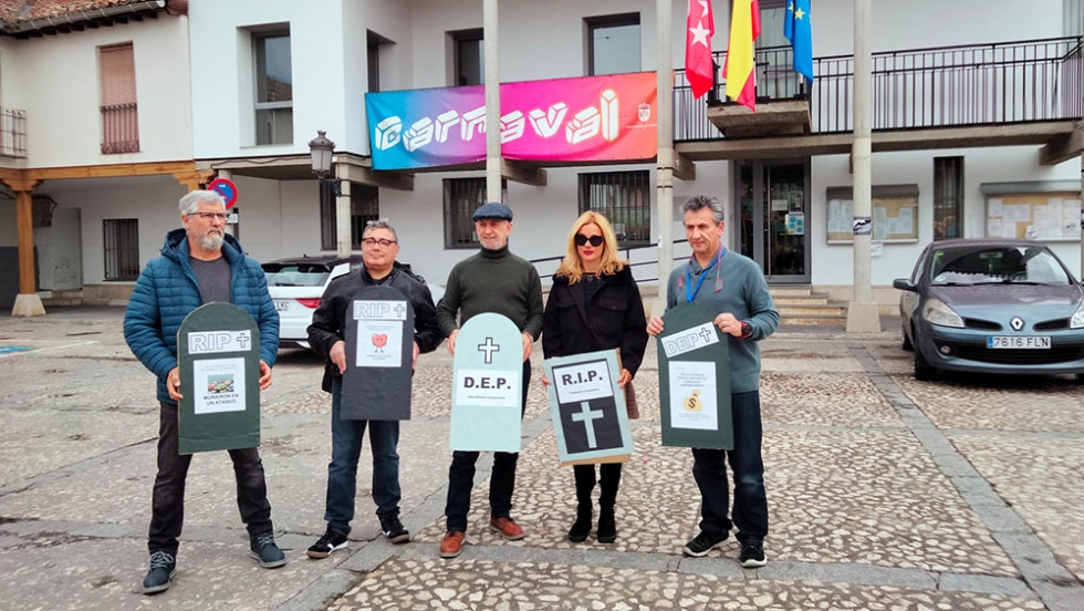 La Asociación de Consumidores y Usuarios de Valdemoro (ACUSVAL) organizó, el pasado domingo 27 de febrero, un entierro de la sardina reivindicativo que fue más allá de las celebraciones tradicionales con motivo del Carnaval. Los usuarios de la asociación crearon un cementerio en la plaza de la Constitución compuesto por sarcófagos, en los que yacían los servicios municipales que echan de menos en el municipio.
