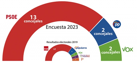 El PSOE, que tiene 6 concejales, estaría en una horquilla entre 8-9, con más probabilidad de 8 que de 9.