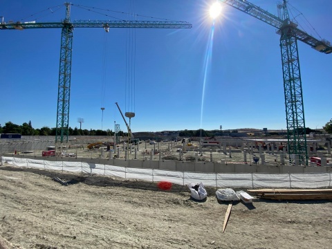 Esta mañana, el consejero de Vivienda, Transportes e Infraestructuras de la Comunidad de Madrid, Jorge Rodrigo, y el alcalde de Pinto, Salomón Aguado, se han desplazado hasta el número 2 de la calle Isaac Albéniz para conocer la evolución de las obras de construcción de las 422 viviendas con alquileres asequibles que está construyendo el Gobierno regional a través del Plan Vive.