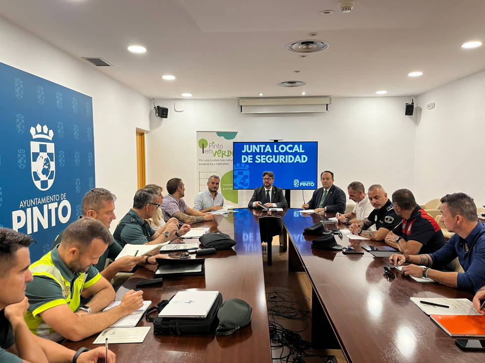 El pasado 1 de agosto tuvo lugar la Junta Local de Seguridad del Ayuntamiento de Pinto con motivo de las fiestas patronales que se celebrarán del 8 al 17 de agosto. El encuentro estuvo presidido por el alcalde, Salomón Aguado, y contó con la participación de la Delegación del Gobierno.