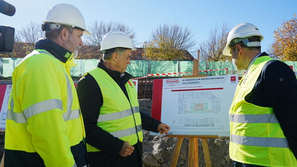 El viceconsejero de Vivienda, Transportes e Infraestructuras de la Comunidad de Madrid, José María García, y el alcalde de Valdemoro, David Conde, visitaron el 27 de noviembre las obras de las 39 viviendas públicas en alquiler que el Gobierno regional está construyendo en la calle Gabriela Mistral. Se trata de una promoción de la Agencia de Vivienda Social (AVS) destinada a familias con dificultades de acceso a un alquiler de mercado, cuyos futuros inquilinos pagarán una renta reducida que nunca podrá superar el 30% de sus ingresos.