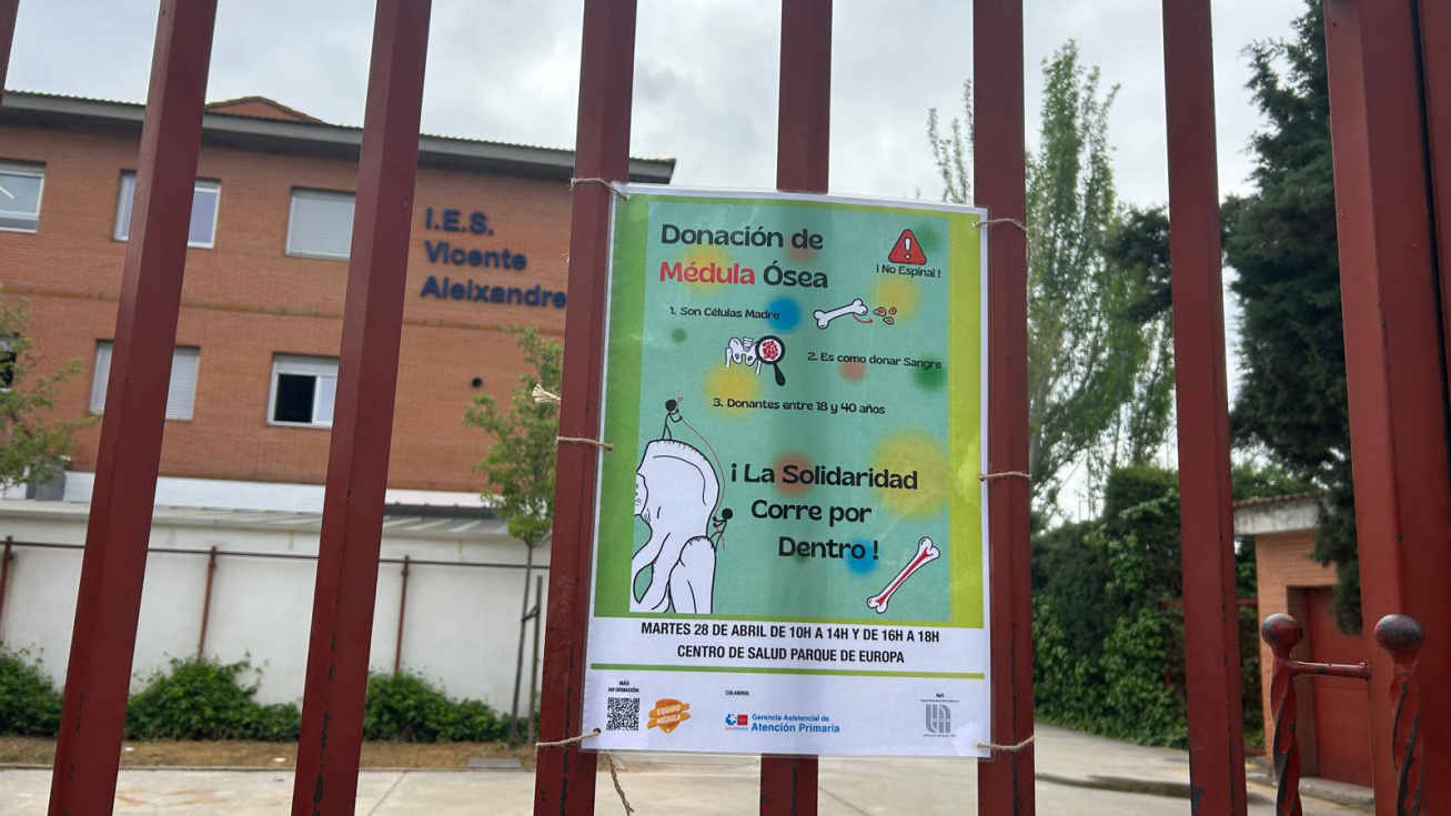 Bajo el nombre de ‘La solidaridad también corre por dentro, dona médula’, varios alumnos de bachillerato del IES Vicente Aleixandre de Pinto han iniciado una campaña para animar a la donación de médula ósea, romper prejuicios y contagiar la generosidad por todo el municipio.